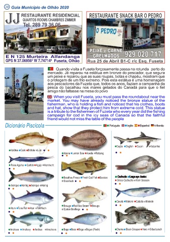 JJ RESTAURANTE RESIDENCIAL Fuseta Olhão QUARTOS ROOMS CHAMBRES ZIMMER Tel. 289 79 36 06 E N 125 Murteira Alfandanga GPS N 37.06956º W 7.74714º Fuseta, Olhão Dicionário Piscícola Português Inglês Espanhol Alemão • • • • • • • • •